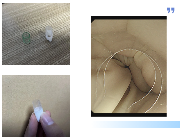 这时,消化内科主任吕后宁大夫有了一个大胆的想法:对透明帽进行改良。说干就干,吕主任迅速行动起来。他利用现有材料,经过一番巧妙的改造,一个特制的内镜透明帽应运而生。这个小小的豁口,就像是在透明帽上打开了一个“操作窗口”,为异物钳的操作预留了空间。