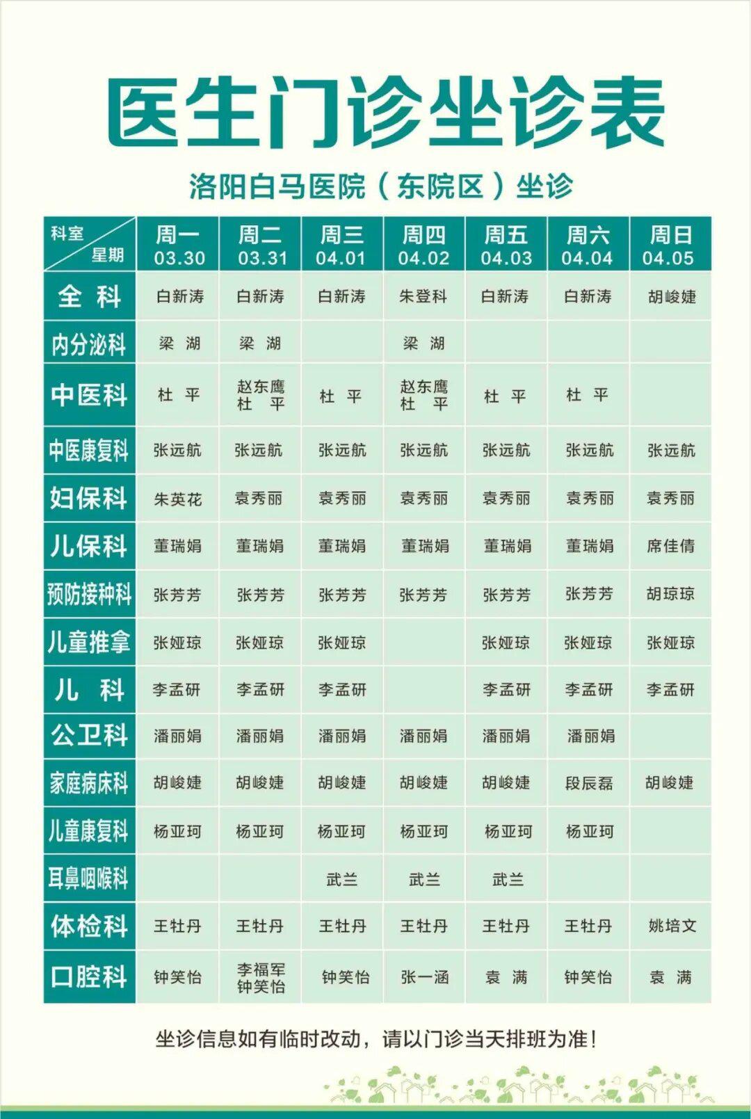 3.30-4.5】洛阳白马医院医生门诊排班表