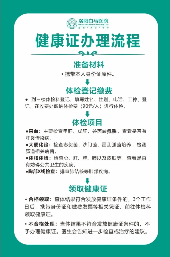 洛阳白马医院体检科作为健康证办理的规范机构,教你如何办理健康证!